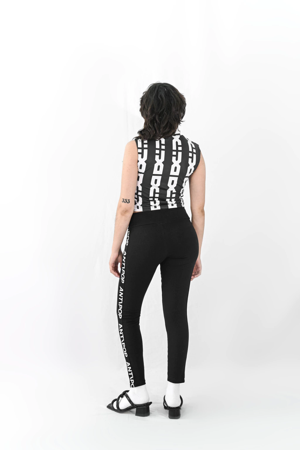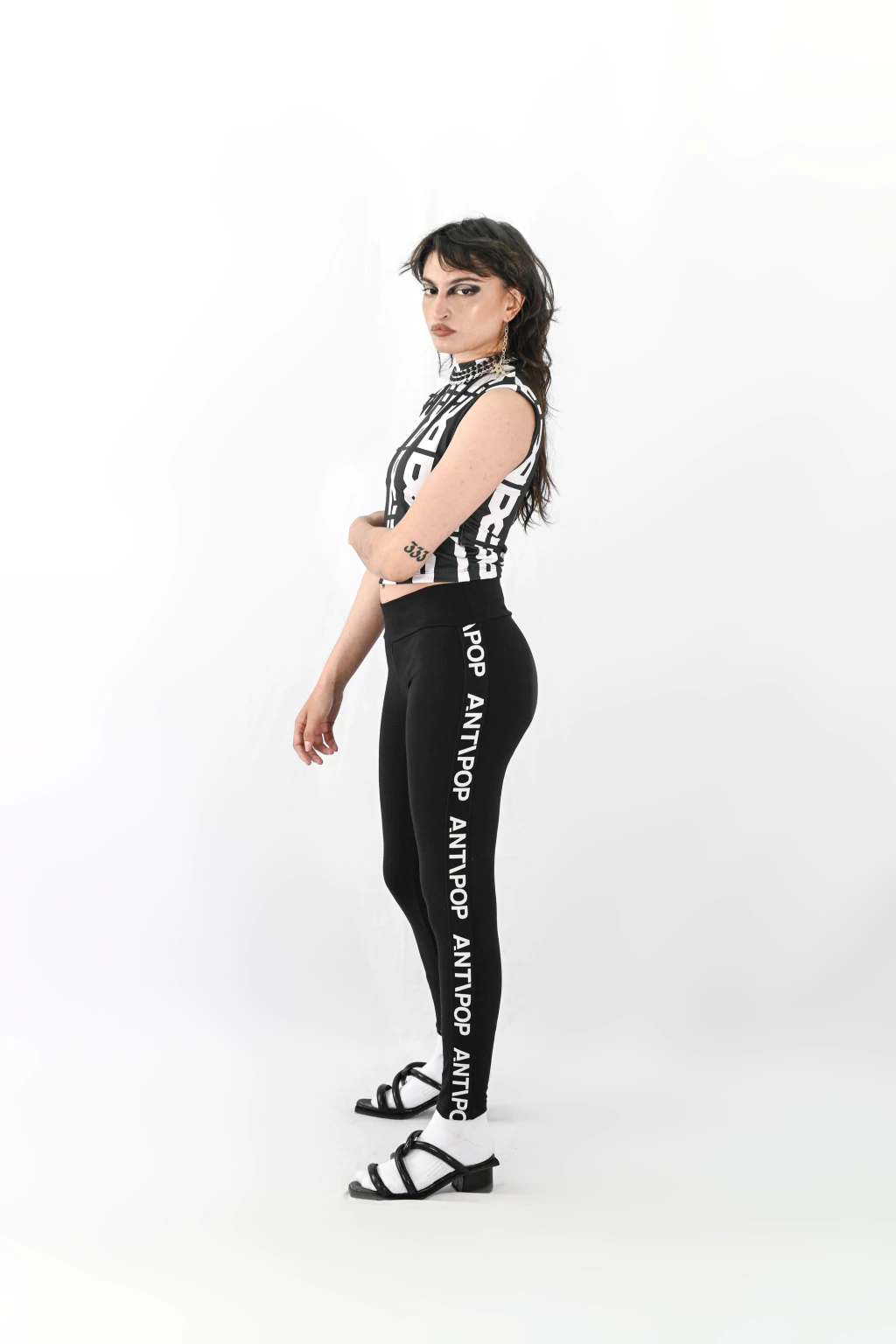 Calza tiro alto confeccionada en lycra de algodón premium con detalle de elástico bordado en el lateral