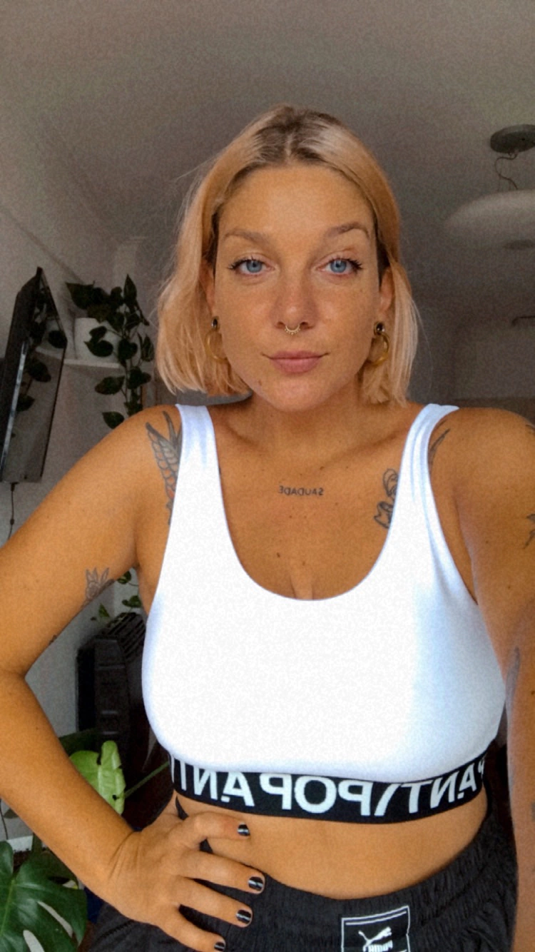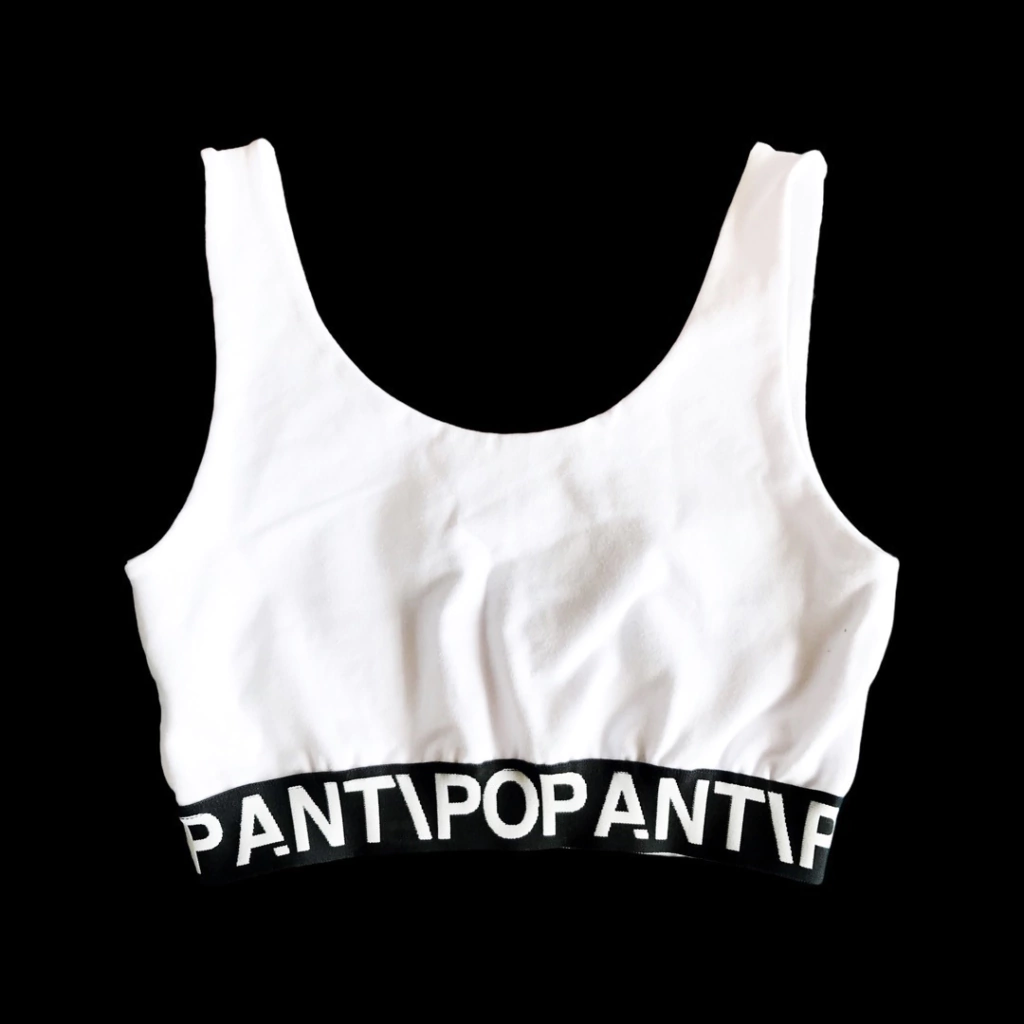 Top a la cintura en lycra de algodón premium con delantero doble, espalda baja y elástico bordado de 35 mm en bajo busto.