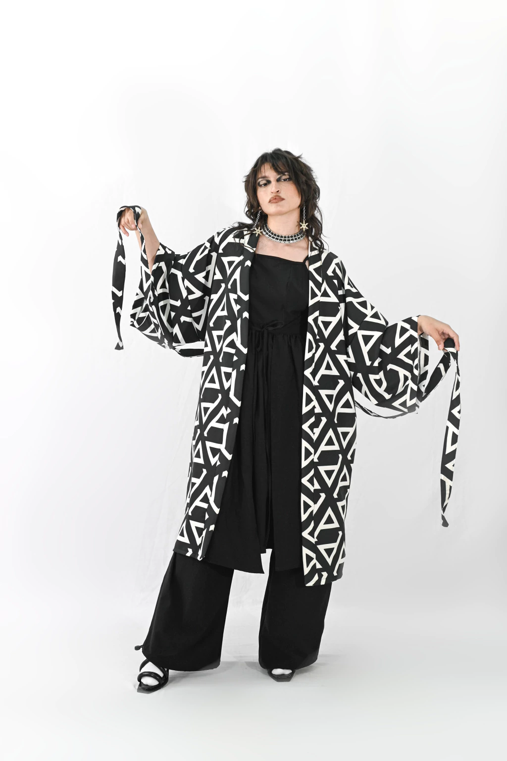 Vestido tipo kimono mangas cortas con lazo confeccionado en crepe cavalli estampado.