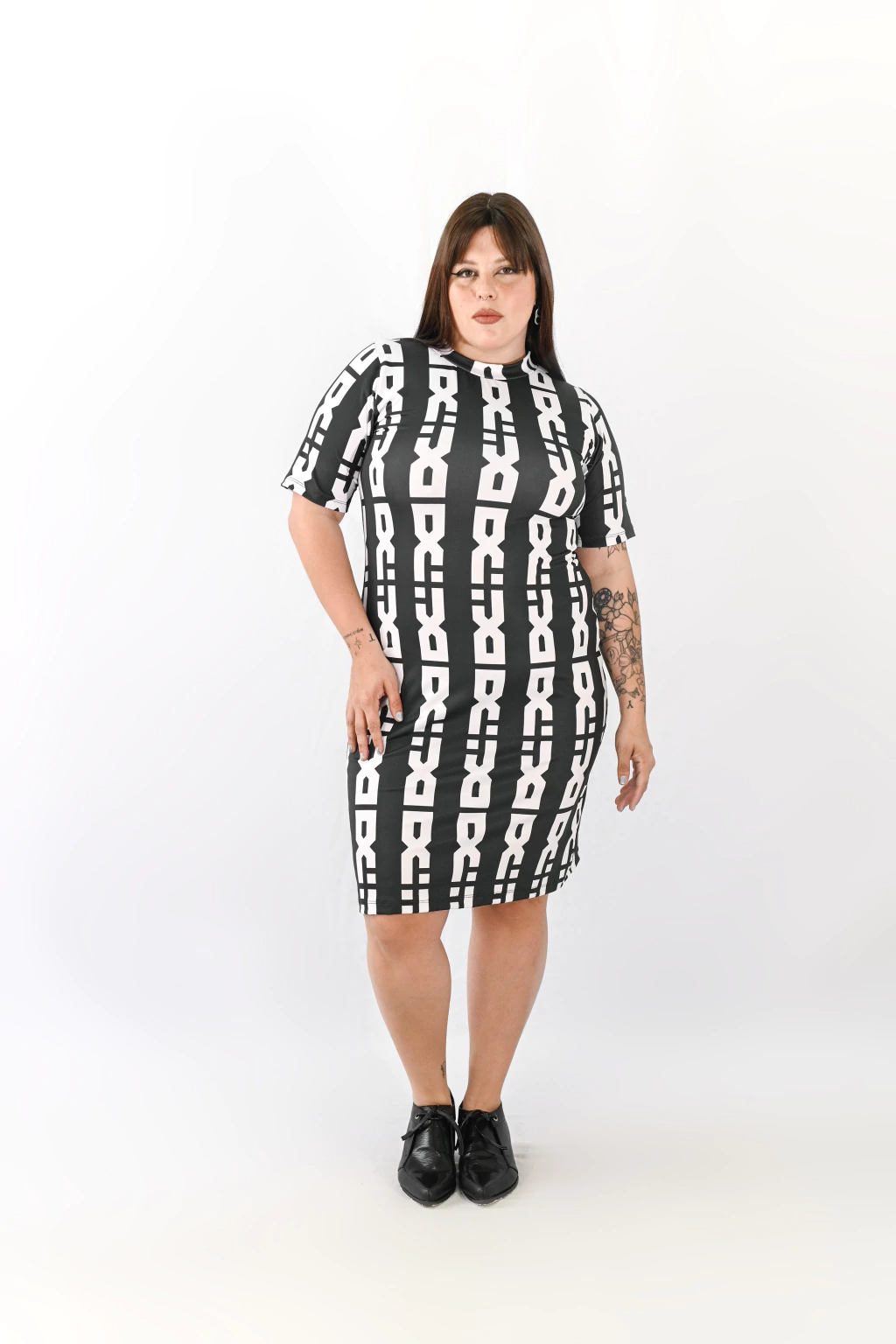 Vestido estampado mangas cortas con cuello redondo confeccionado en lycra premium.